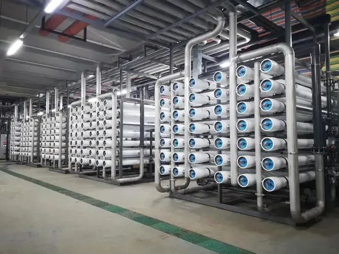 通常的預處理系統組成如下,粗濾(~80微米)以除去大顆粒,加入次氯酸鈉等氧化劑,然后經多介質過濾器或澄清池進行精密過濾,再加入亞硫酸氫鈉還原余氯等氧化劑,最后在高壓泵入口之前安裝保安濾器。